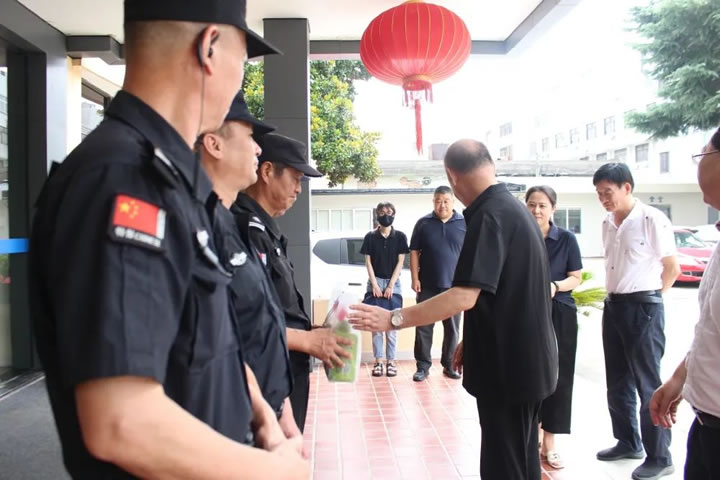 夏日炎炎送清涼,凝心聚力迎亞運。7月19日上午,浙江省保安協會、嘉興市保安協會莅臨海甯保安公司,向奮戰在一線的保安員送上夏日清涼用品和沁人心脾的關懷,並(bìng)囑咐保安員:現下亞運會在即,全省保安行業擰成一股繩,凝心聚力迎亞運,每位在一線辛勤守護平安的保安員,都是這個大團隊(duì)中的重要一員。在提供保障服務的同時也要注意自身健康,這樣才能更好地爲亞運會的勝利召開保駕護航。